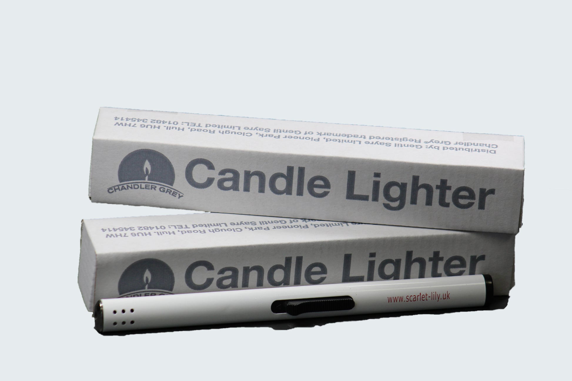 This quality refillable candle lighter is perfect for lighting our candles. No more burnt fingers, just push forward the button and light the candle. The lighter is 185mm long, white, and has our website address in pink on the body, just so you know where to go to get your next candle.