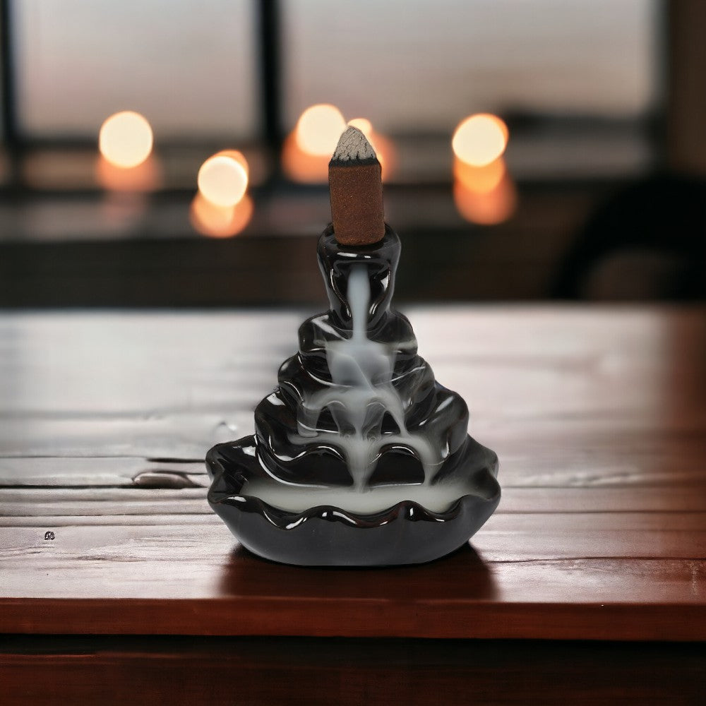 Transform your space into a sanctuary with this Incense Backflow Burner. Simply place a backflow cone at the top of the burner, light it, and witness the enchanting flow of fragrant smoke as it cascades through the shape of the burner.