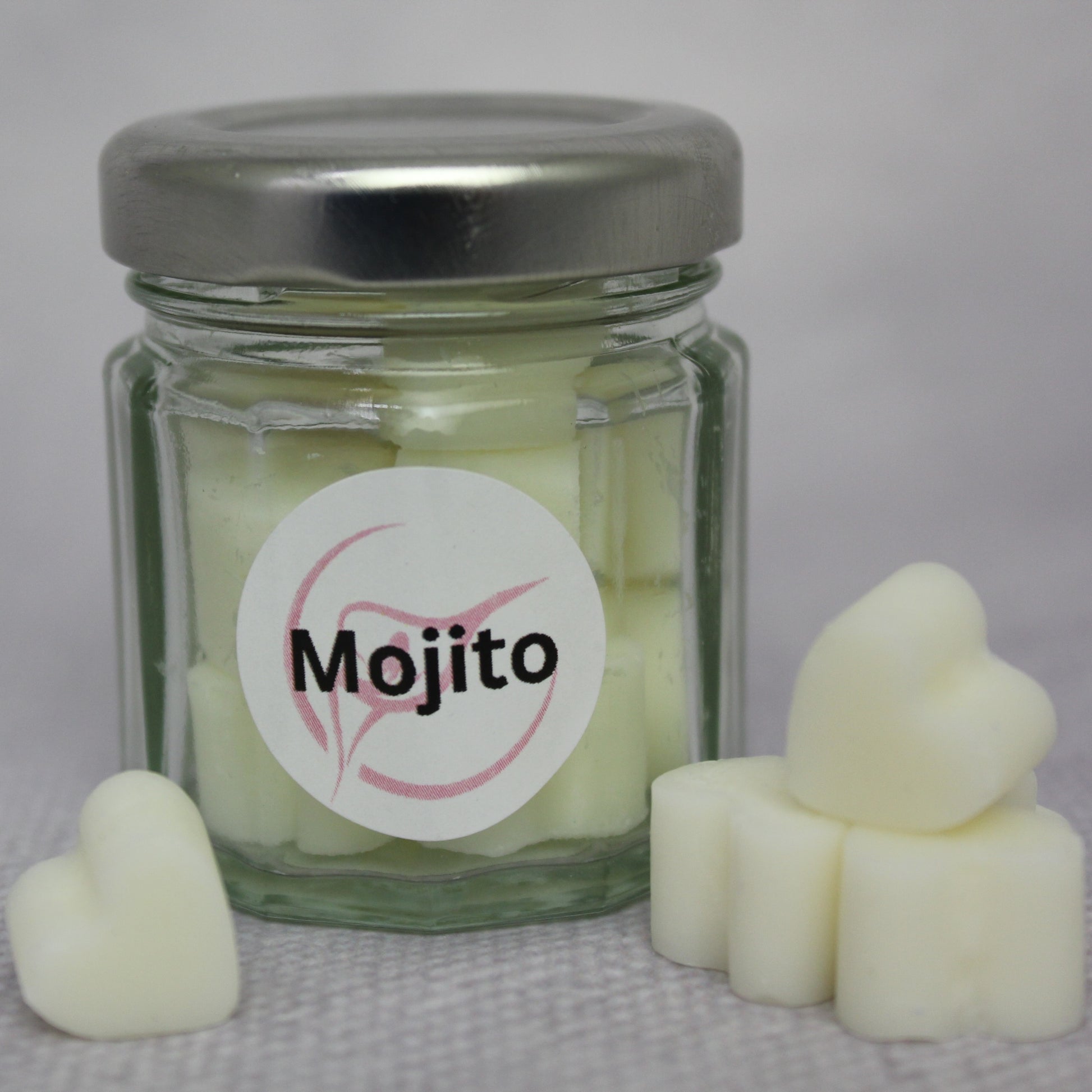 In the sample jar of melts there is 12-13 hearts with a total melt weight of 17g.