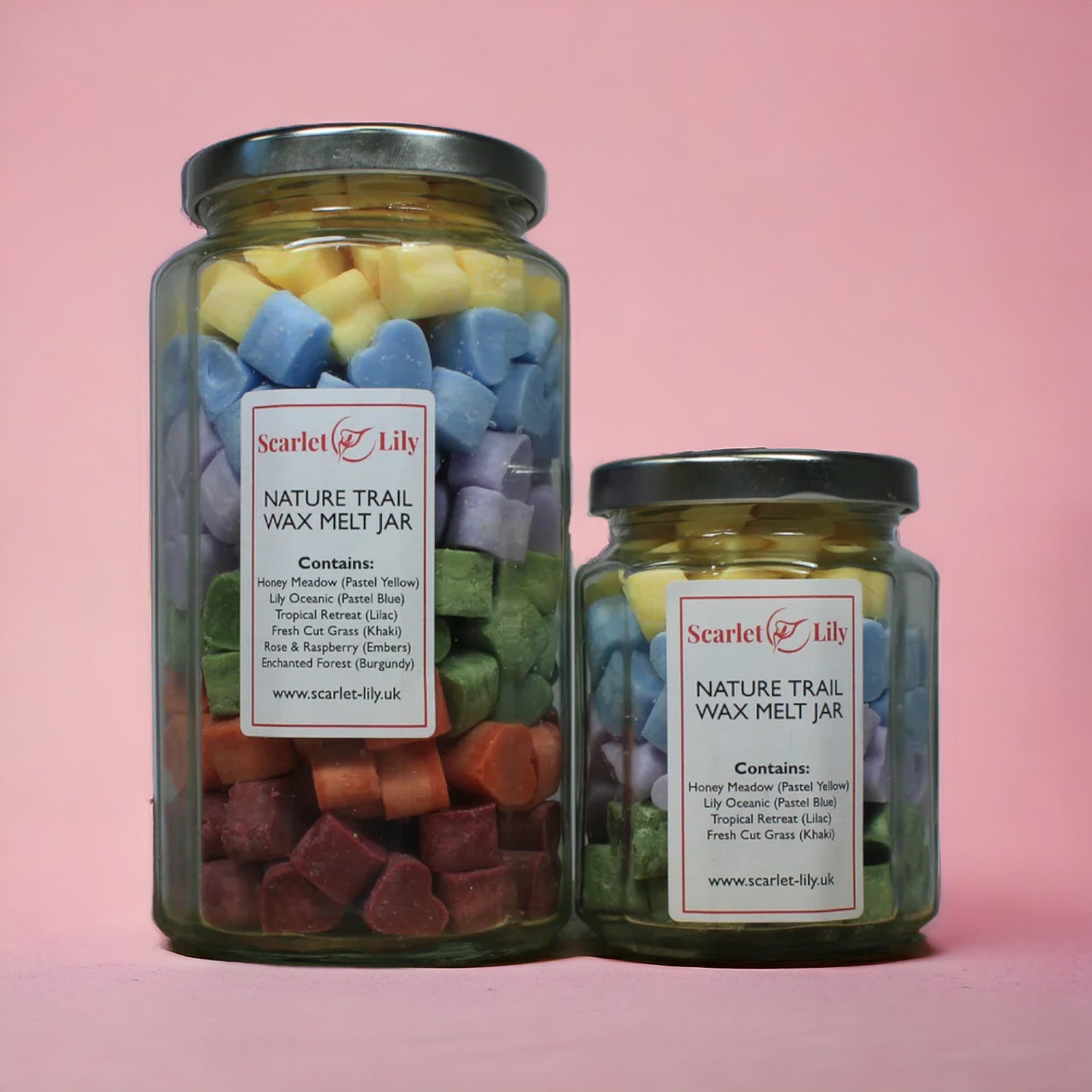 The large nature trail jar contains all of the above fragrances plus Rose & Raspberry (Embers) and Enchanted Forest (Burgundy).