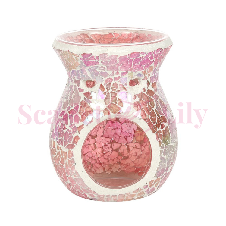 Beautiful wax melter with a stunning iridescent pink mirrored crackle effect.