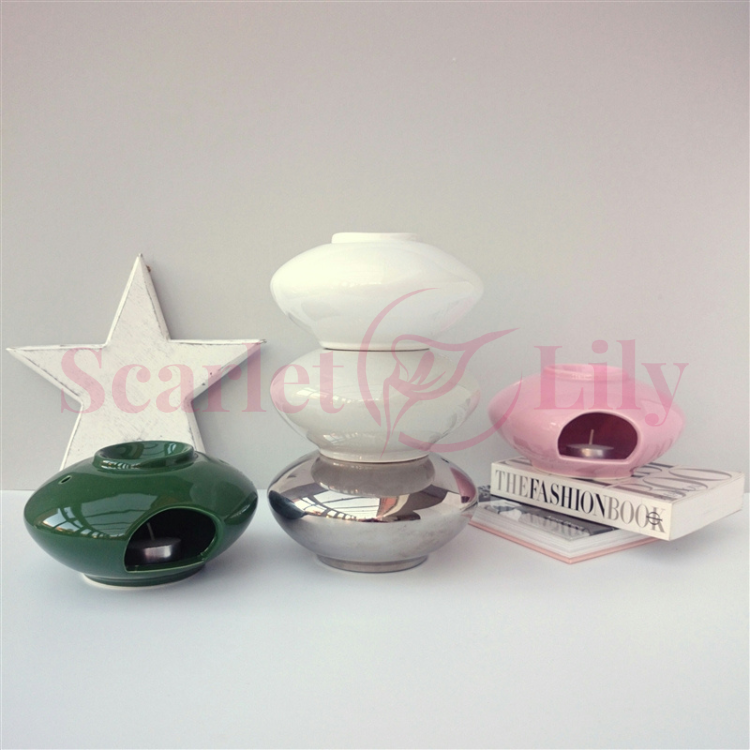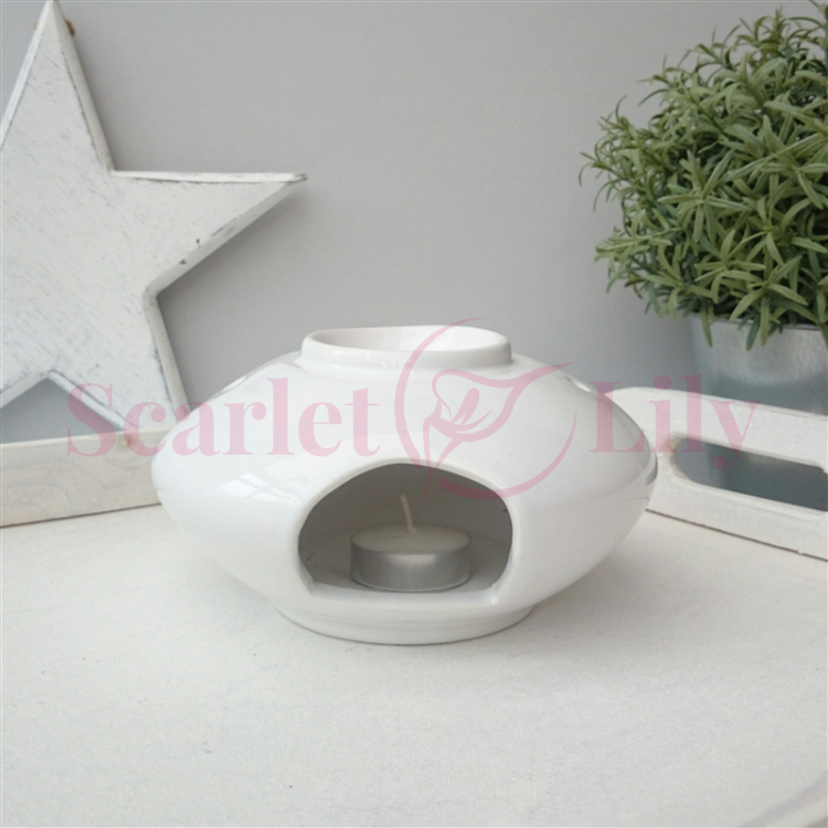 A unique oval shaped white wax melter which can be stacked when not in use to make your own unique ornament. A pink version of this melter is also available. Dimensions: H9cm x W16cm x D16cm