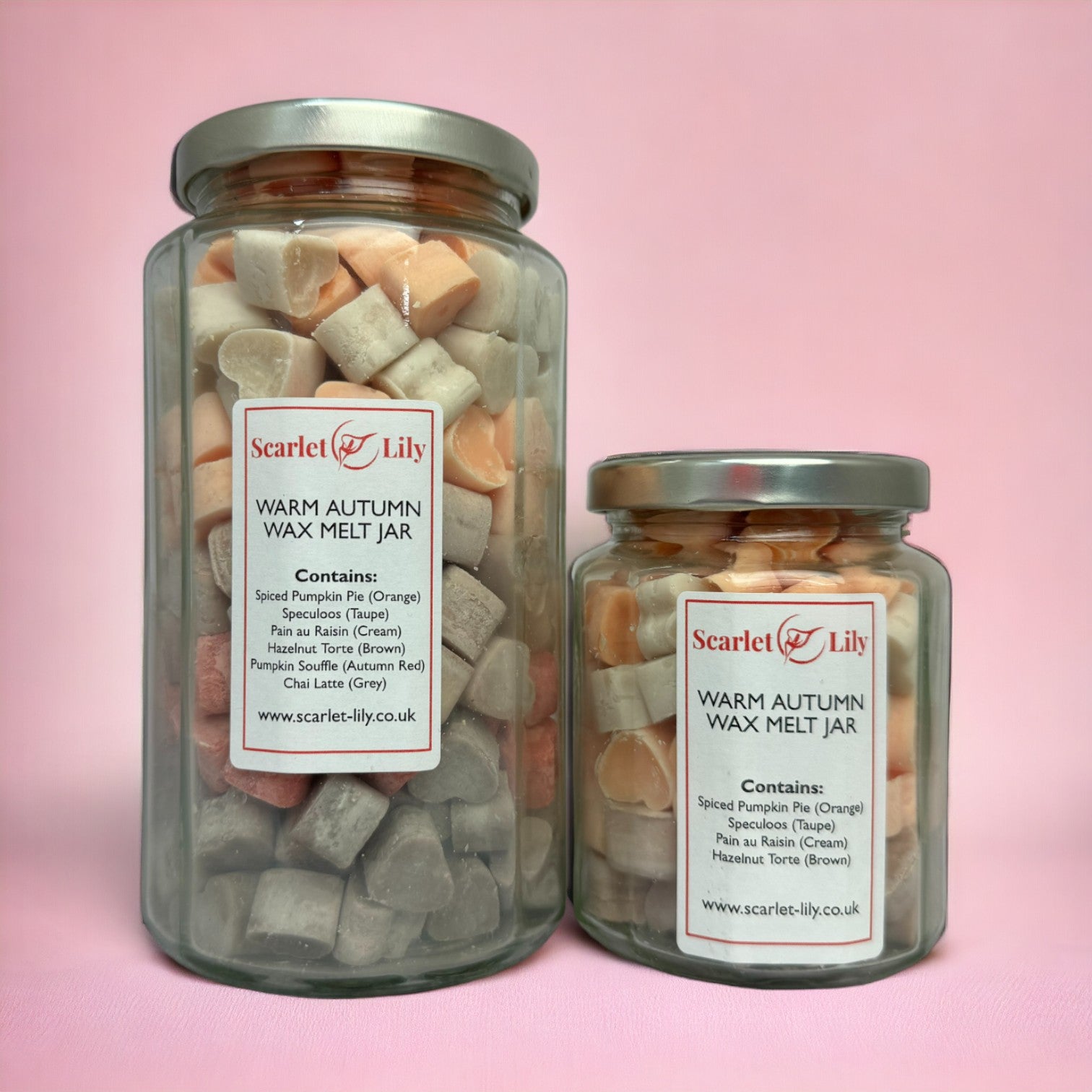 The large warm autumn jar contains all of the above fragrances plus Pumpkin Souffle (Autumn Red) and Chai Latte (Grey).